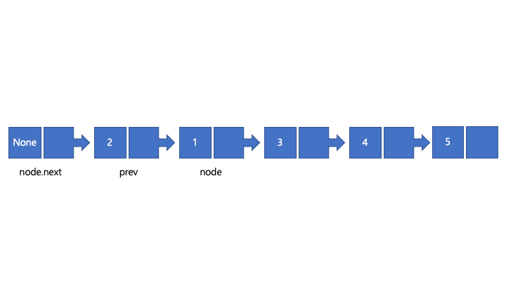 prev에 node(현재 head)를 담아준다. prev와 node.next를 연결해준 것이다.