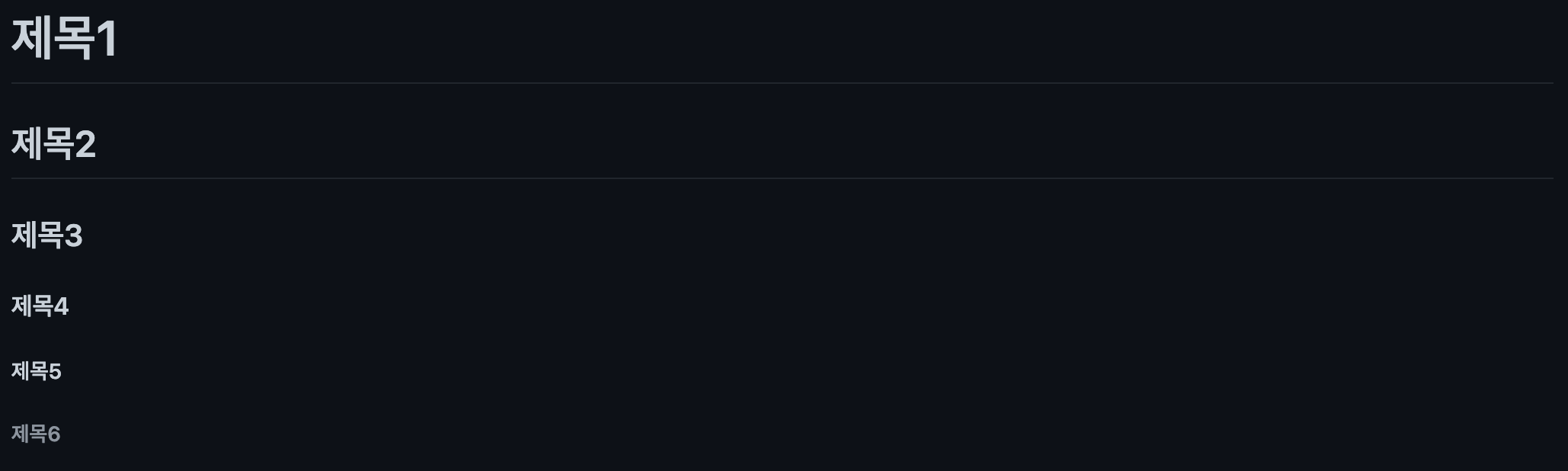 제목1(#)과 제목2(##)은 Header로 취급되기 때문에 수평선이 자동으로 생긴다.
