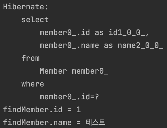 이렇게 find() 메소드를 사용하게 되면 영속성 컨텍스트에 엔티티가 없을 경우에 DB에 쿼리를 날리게 된다.