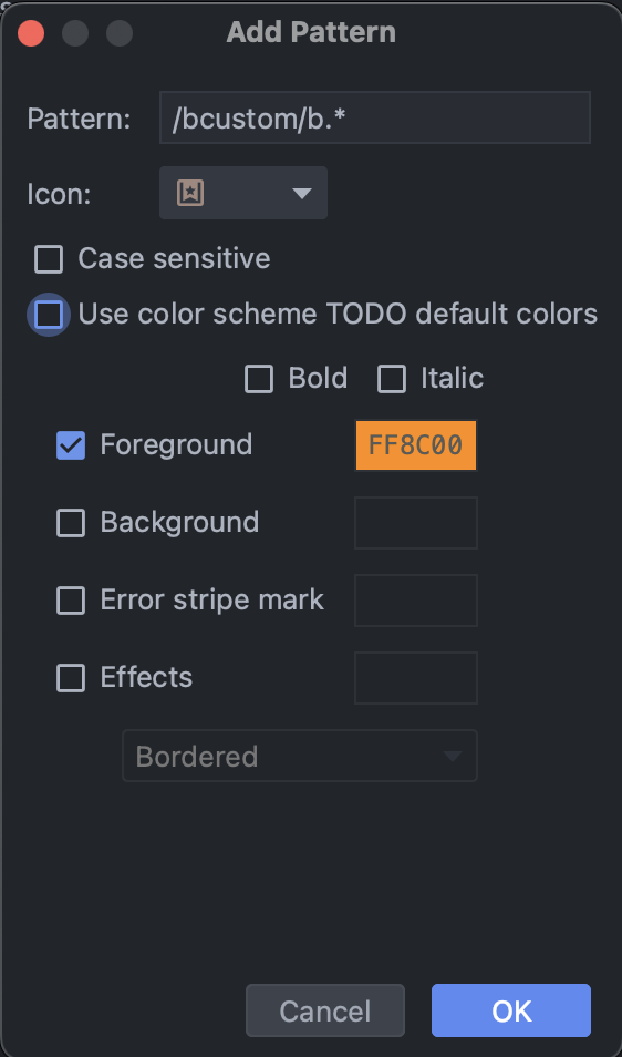또, Use color scheme TODO default colors 버튼 체크박스를 해제하면 원하는 형태의 TODO를 만들 수도 있으니 입맛에 맞게 사용해보자.
