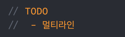 멀티라인 TODO는 TODO 태그 다음 줄에 한칸의 공백(space)을 입력 후 작성하면 된다.