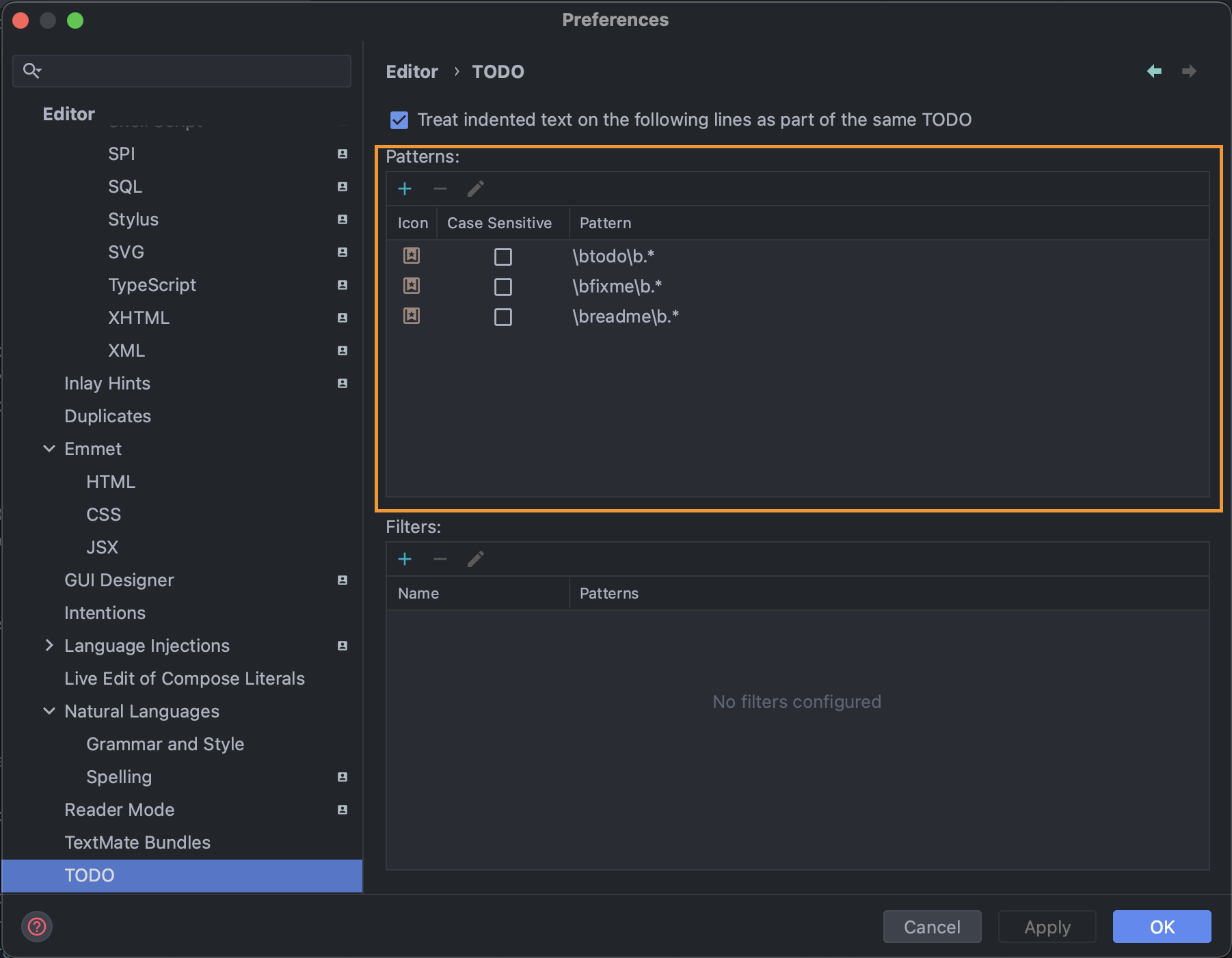 - Preferences > Editor > TODO