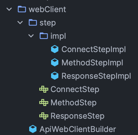 이런 각 step 구조로 만들게 된 이유는 회사 내의 OpenApi에서 범용적으로 사용할 수 있도록하고, 메서드 체이닝 방식을 사용해서 마치 라이브러리를 사용하는 것처럼 간편하게 사용할 수 있게 하기 위해서이다.
