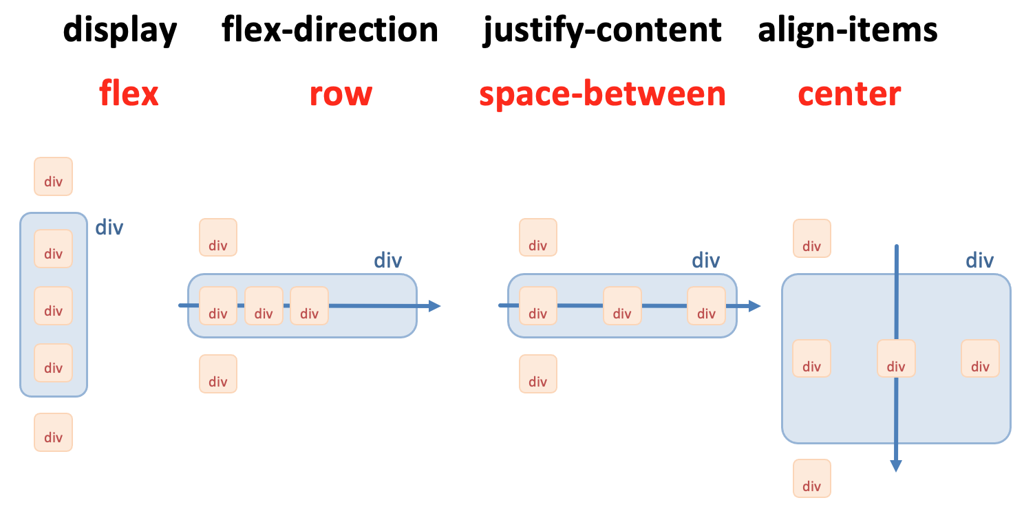 display: flex;로 기본 정렬 후 세부적으로 조절한다.
