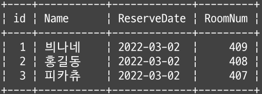 위 쿼리는 RoomNum이 409인 유저의 이름을 가져오는 예제이다.